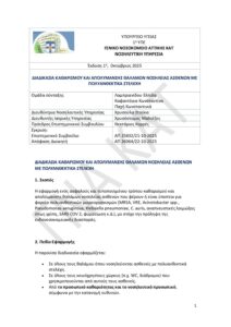 Αρχική » Διαδικασίες » ΔΙΑΔΙΚΑΣΙΑ ΚΑΘΑΡΙΣΜΟΥ ΚΑΙ ΑΠΟΛΥΜΑΝΣΗΣ ΘΑΛΑΜΩΝ ΝΟΣΗΛΕΙΑΣ ΑΣΘΕΝΩΝ ΜΕ ΠΟΛΥΑΝΘΕΚΤΙΚΑ ΣΤΕΛΕΧΗ